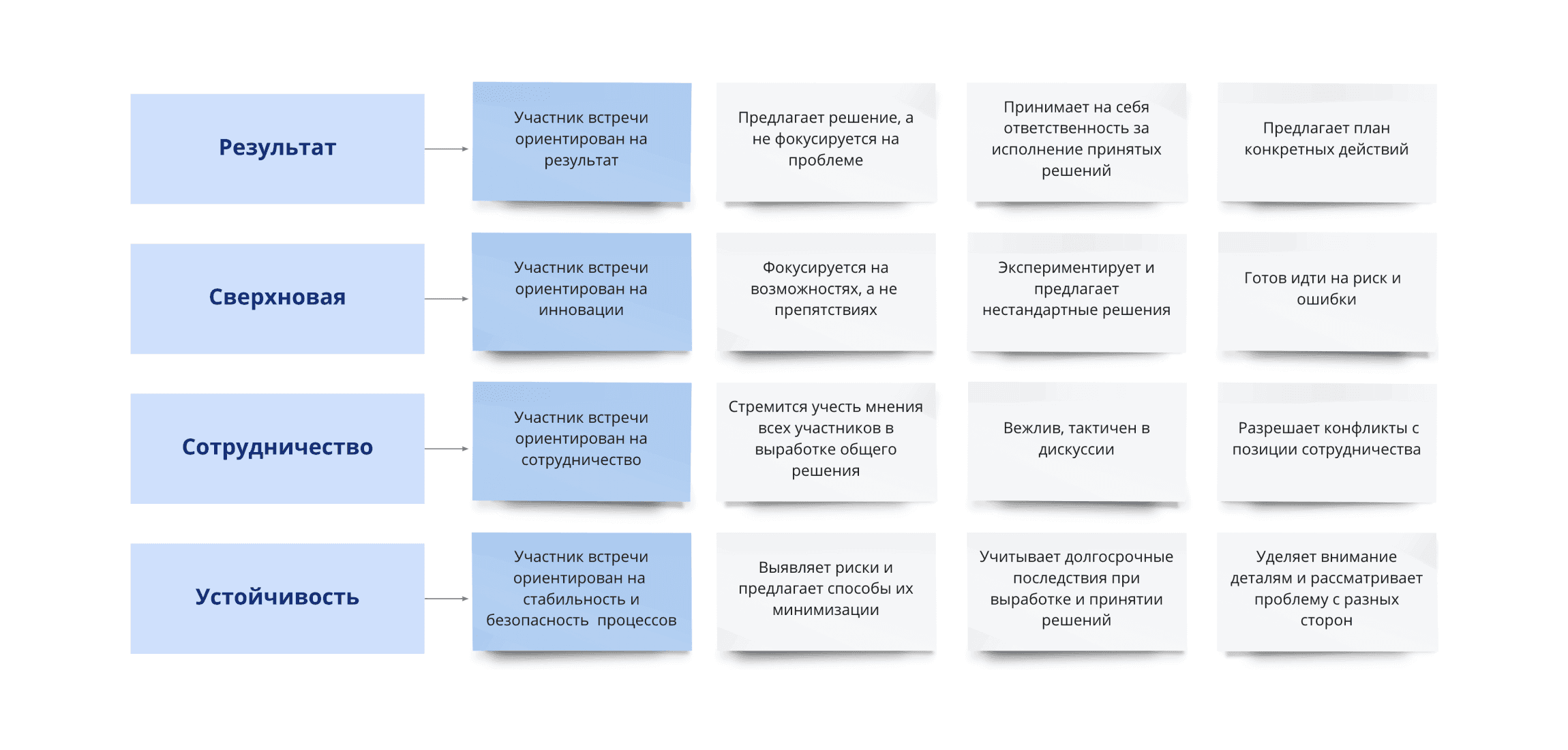 As a result, we developed an app called Mera (en. «measure») for planning and evaluating the quality of meetings. We designed our own rating model that encompassed not only interactions between participants but also the preparation process, such as creating meeting documents, a well-structured agenda, and ensuring the correct participant list, among other crucial actions.