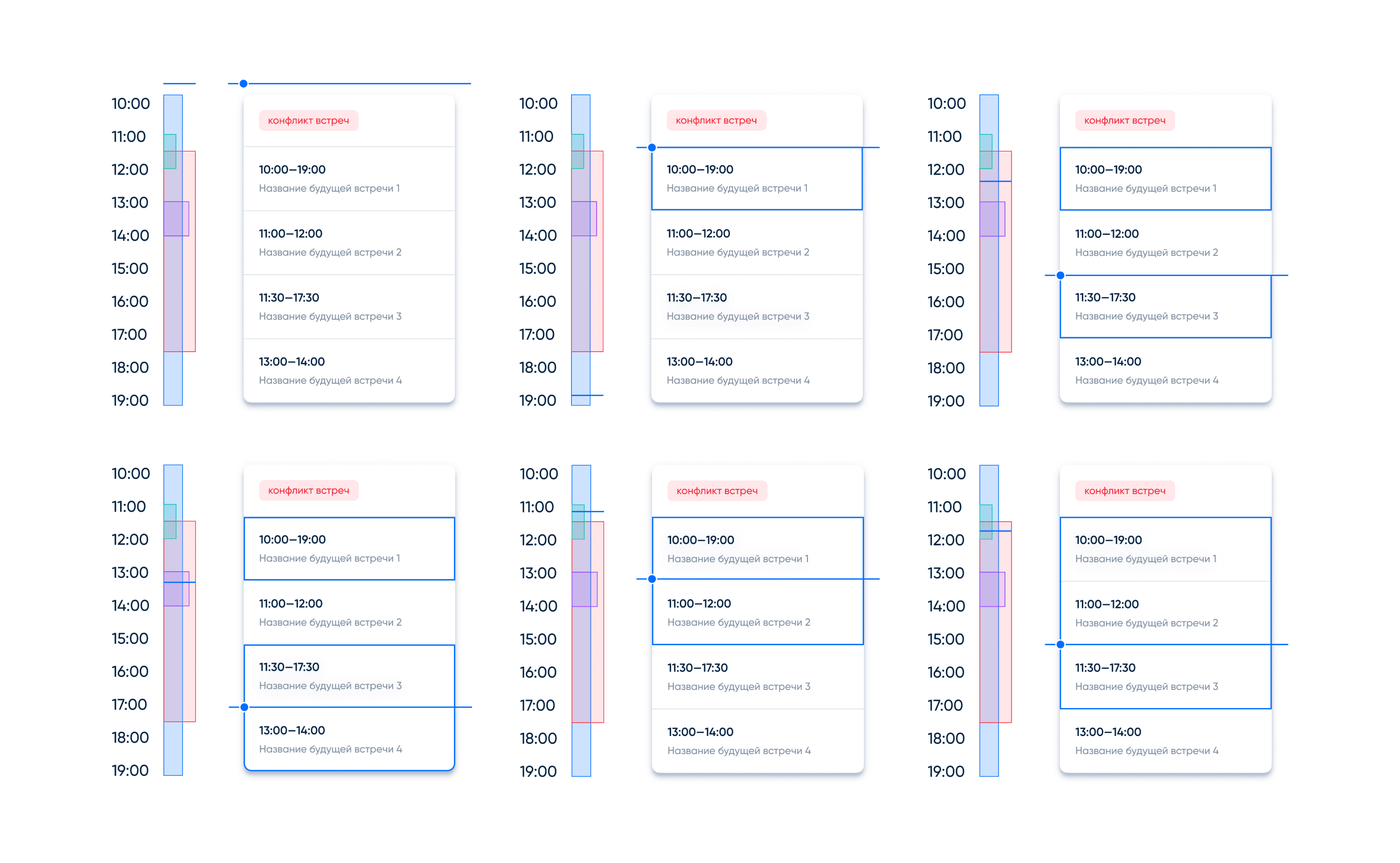 Meeting grouping logic and timeline in case of meetings conflict.