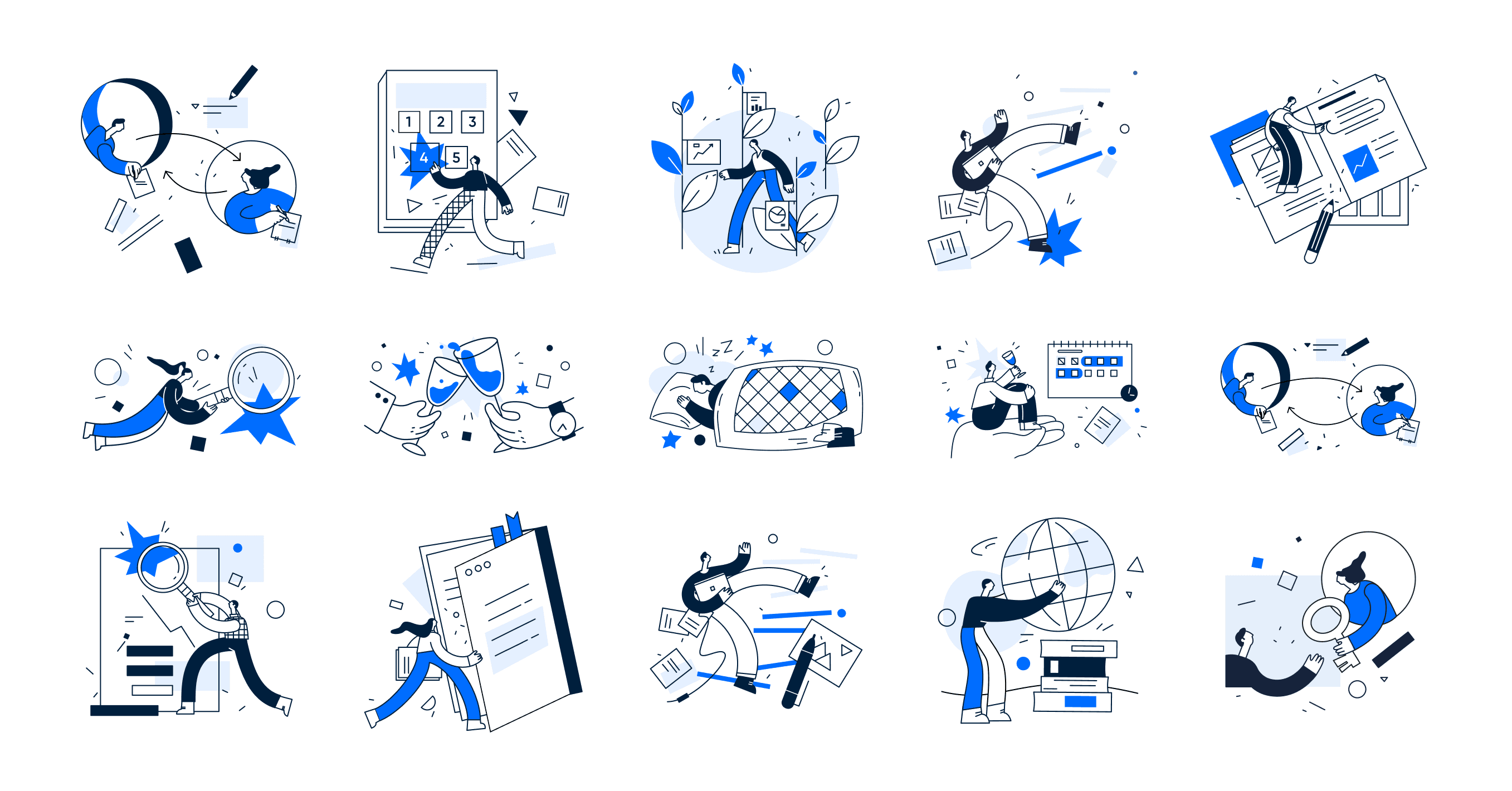 Some of 30+ illustrations for the project.