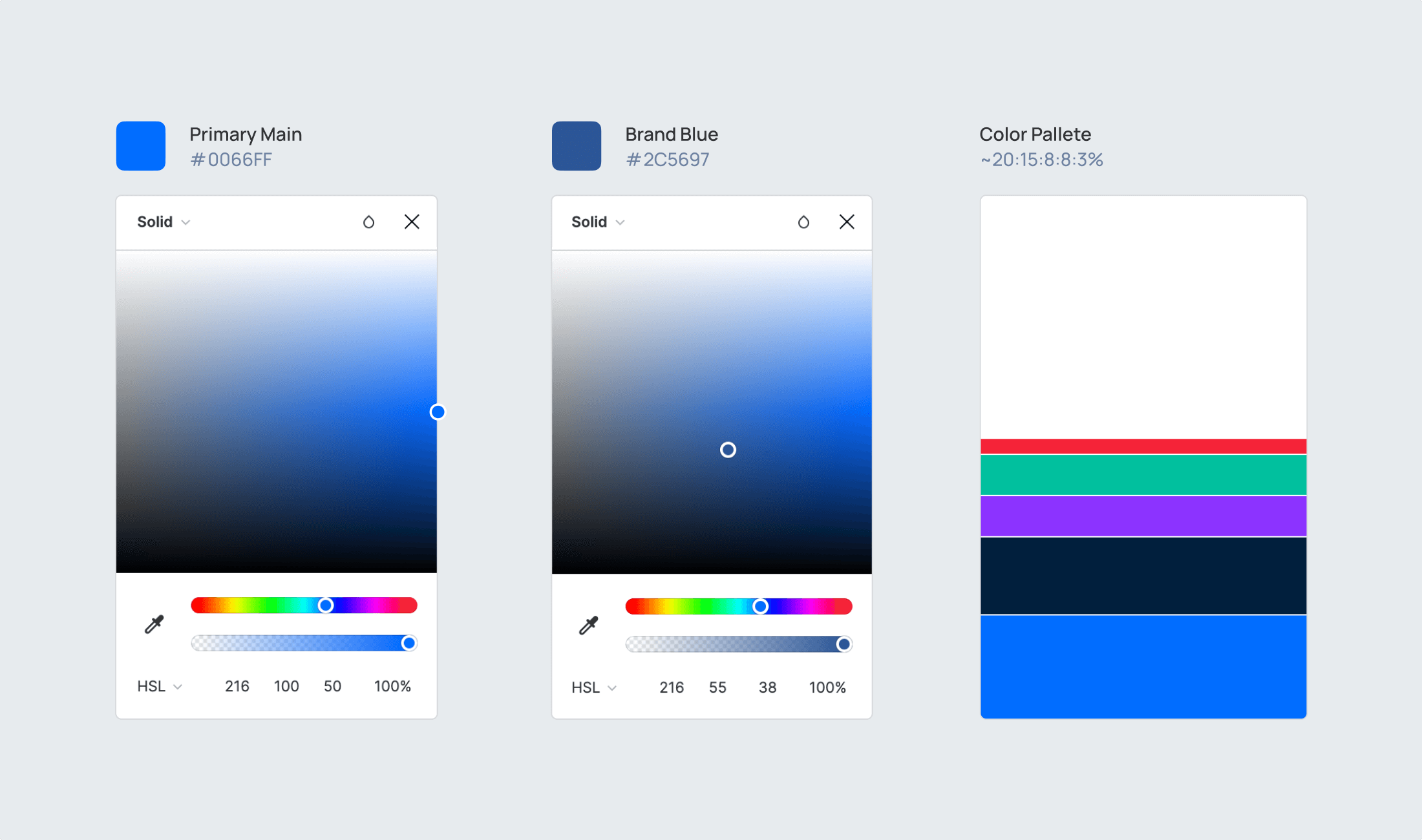 What's for the corporate color palette — I retained the main color but suggested a slight refresh. Additionally, I designed a system of additional interface colors to indicate errors, success, and user progress. It is worth noting that unsatisfactory results were highlighted in violet within the interface, rather than red. This was a deliberate decision to avoid excessive user annoyance (as red can be challenging to perceive). Red was reserved for cases where it was truly crucial, such as errors requiring special attention.